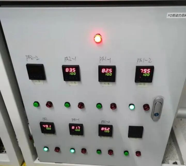 安装在真空管或燃气管道加热套, PID 温度控制器相对分散, 不能同时有效地监测所有加热套的实时温度和运行情况, 为了能够同时实时监测所有加热套情况, 我们配置了HMI 控制箱, 将所有加热套集成在一起, 实现通信集中控制。